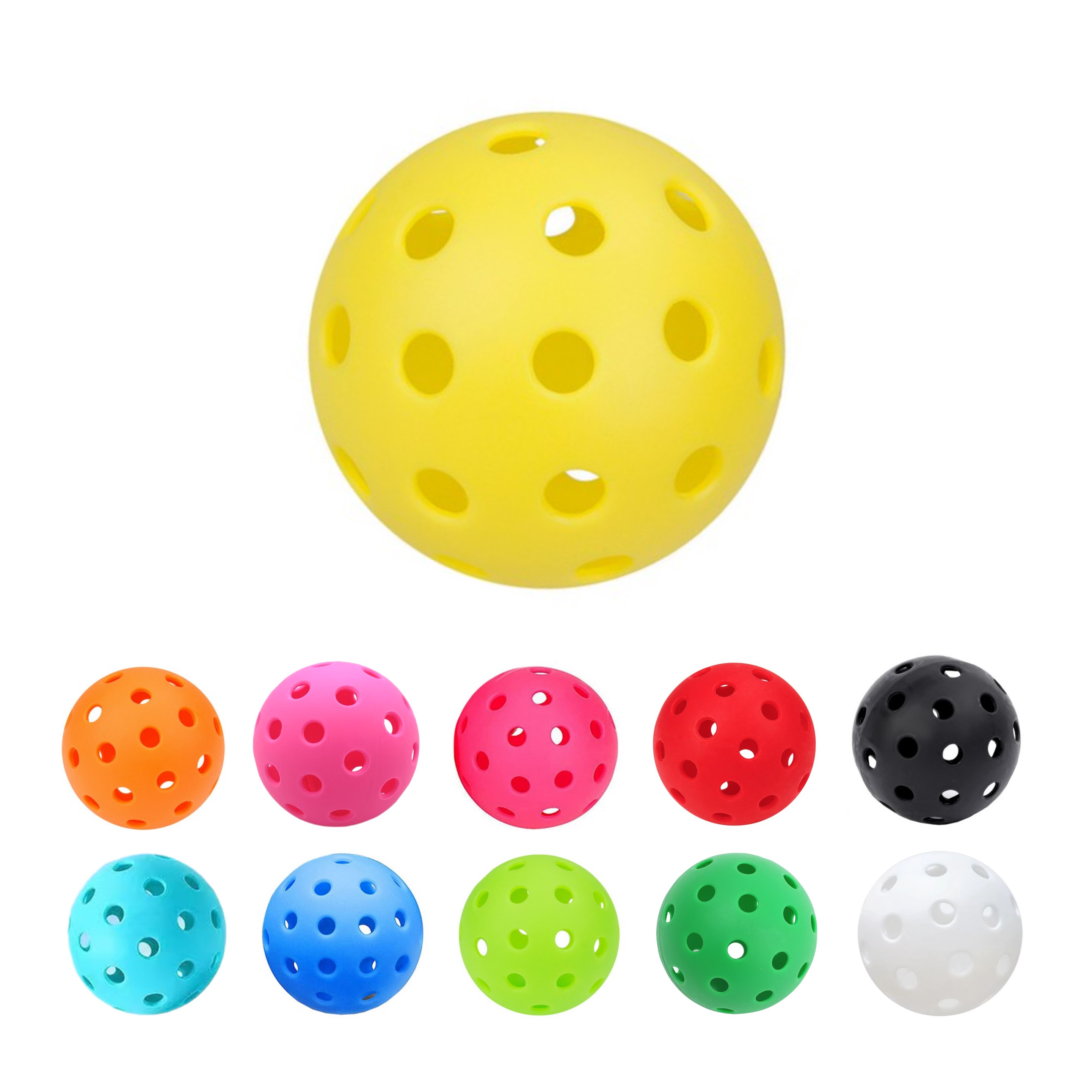 This outdoor pickleball is made of TPE plastic material. It is light weight, sturdy and durable. High visibility color makes the balls easy to see during games. Suitable for adults, children, singles, beginners, etc. Can customize your logo.